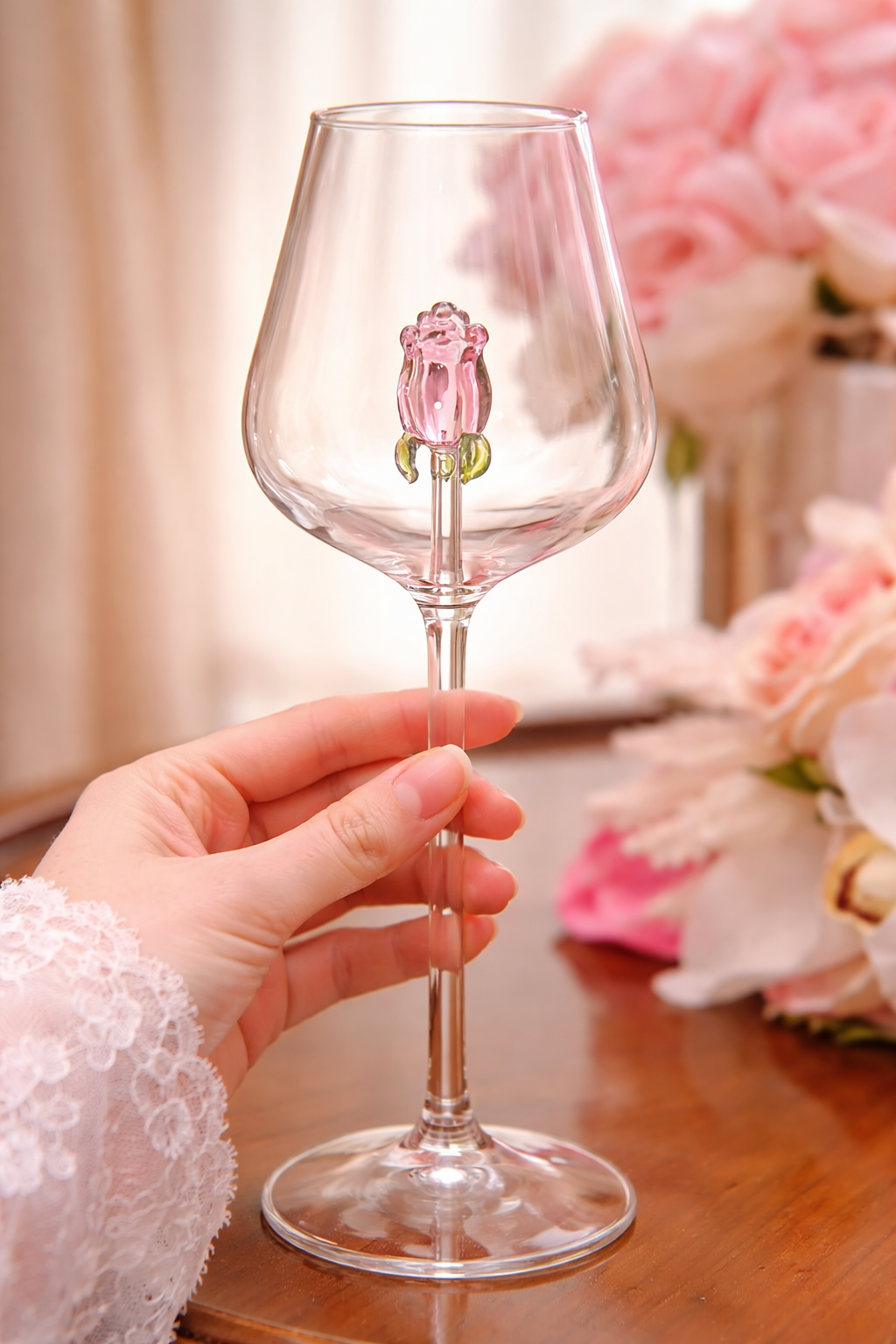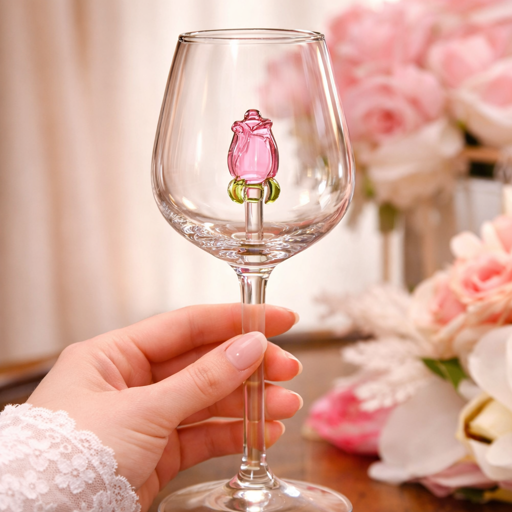 🌹 Kieliszek z delikatną różą zatopioną w nóżce.